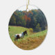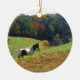 Ornement En Céramique Cheval blanc et Brown, étang d'automne