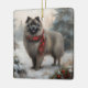 Ornement En Céramique Chien de Keeshond à Noël de neige