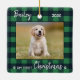 Mon premier Noël ! Décorez votre arbre ou envoyez un cadeau spécial avec ce super mignon personnalisable personnalisation de l'ornement de vacances photo animal de compagnie. Ajoutez la photo de votre chien et personnalisez avec le nom et l'année. L'ornement est double face, vous pouvez faire des photos différentes de chaque côté. DROIT D'AUTEUR © 2020 Judy Burrows, Black Dog Art - Tous droits réservés. Chiot Premier Noël Vert Plaid Chien Animaux de compagnie Photo Ornement en céramique