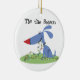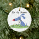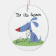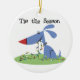 Un adorable ornement de gardiens de vacances avec un chien de chiot bleu avec une chaîne de lumières d'arbres et le texte "C'est la saison" !
