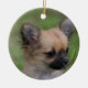 Ornement En Céramique Chiot aux cheveux longs de chiwawa regardant