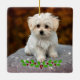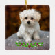 Ornement En Céramique Chiot maltais avec saint de Noël
