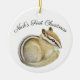 Un dessin d'un adorable chipmunk de bébé orne cet ornement de Noël personnalisable !
