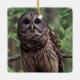 Une belle chouette adulte barrée perchée sur un membre d'arbre. Photo de Brian Kraus.