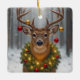 Ornement En Céramique Christmas Buck Wearing a Glowing Wreath