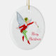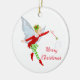 Christmas Ornament shown in a round shape with a white background and a red colored back side with a cute holiday magical fairy print.