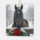Ornement En Céramique Christmas Horse With a Wreath on a Fence