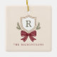 Ajoutez une touche de fantaisie et de charme personnalisé à votre décor de vacances avec cet ornement élégant. Le design se compose d'une crête simple dessinée à la main, ornée de sprigs à feuillage persistant festifs et d'un arc rayé rustique. Customisez facilement avec l'initiale et le nom de votre famille pour créer un accent unique et confortable pour votre maison. Toutes les couleurs sont entièrement modifiables, ce qui vous permet de l'adapter parfaitement à votre thème de vacances existant. (Assurez-vous de modifier les deux côtés.) © Kimbellished, LLC