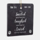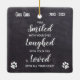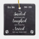 Honore ton meilleur ami avec un ornement commémoratif personnalisé. Cet ornement commémoratif unique est le cadeau parfait pour vous, votre famille ou vos amis pour rendre hommage à votre être aimé. Nous espérons que votre mémorial vous apportera la paix, la joie et des souvenirs heureux. Citation : "Vous avez souri avec vos yeux, Ri avec votre queue, et Aimé avec tout votre coeur." Personnalisez avec le nom et les dates. L'ornement est double face, les deux côtés sont identiques. DROIT D'AUTEUR © 2020 Judy Burrows, Black Dog Art - Tous droits réservés