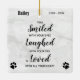 Honore ton meilleur ami avec un ornement commémoratif personnalisé. Cet ornement commémoratif unique est le cadeau parfait pour vous, votre famille ou vos amis pour rendre hommage à votre être aimé. Nous espérons que votre mémorial vous apportera la paix, la joie et des souvenirs heureux. Citation : "Vous avez souri avec vos yeux, Ri avec votre queue, et Aimé avec tout votre coeur." Personnalisez avec le nom et les dates. L'ornement est double face, les deux côtés sont identiques. DROIT D'AUTEUR © 2020 Judy Burrows, Black Dog Art - Tous droits réservés