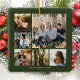 Créez votre propre collage photo de famille classique élégant ornement d'arbre de conservation avec faux or Joyeux script de calligraphie de Noël sur un arrière - plan vert foncé.