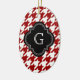 A clean, classic houndstooth pattern in red and white with a black label for your monogram, name or other text.