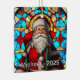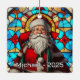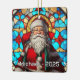 An absolutely stunning Christmas ornament perfect for a cherished spot on your tree! This design captures a warm, detailed portrait of Santa Claus holding a star and holly, beautifully rendered in the vibrant, illuminated style of traditional stained glass. The rich colors and classic imagery make this a timeless piece, ideal for commemorating a special year, gifting, or adding an elegant, classic holiday touch to any Christmas decor collection.