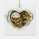 Coeur steampunk mécanique, volumétrique, avec manomètre, acier et or sur arrière - plan blanc. Style Steampunk.
