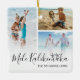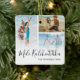 Élégant ornement de noël hawaïen avec un collage photo de 3 de votre merveilleuse famille, le dicton "mele kalikimaka", deux dessins d'étoiles de mer, votre nom de famille, et l'année.