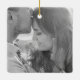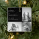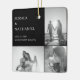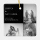 Cette décoration de gardiennage fait une faveur spéciale pour vos invités mariages. Design comporte trois photos sur un arrière - plan noir sur le devant et une photo à fond plein sur le dos. Utilisez le modèle pour ajouter vos noms, date et lieu du mariage. Cet ornement de Noël fait aussi un grand cadeau à un couple marié pour leur premier Noël.