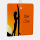 Customisez en ajoutant le texte de votre choix. Comporte un arrière - plan orange lumineux de coucher du soleil. Avec une fille silhouettée de surfer.