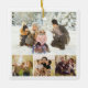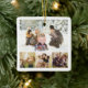 Créez votre propre collage photo personnalisé ornement de Noël avec 4 de vos souvenirs d'images préférés. Côté inverse avec Joyeux Noël ou texte personnalisé en calligraphie minimaliste avec nom et année.