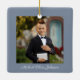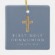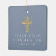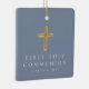Croix Religieuse Bleue Personnalisée Première Communion Photo Ornement En Céramique. Une partie de la Suite d'invitation de la première communion de Dusty Blue Cross Boy avec invitation, papeterie et accessoires de fête disponibles.