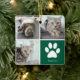 This beautiful cat photo Christmas ornament is personalized with adorable pictures of your sweet girl kitty. Customize this chic gift with your own custom feline photographs around a cool green square with a cute white paw print and your kitten's name in the center. Add your favorite full photograph on the back.