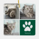 Ornement En Céramique Custom Cat Photo Collage Cute Green Christmas