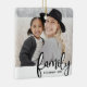 Below the photo, the word “family” appears in a lowercase serif font on a white band, followed by your family name and the year for a personal touch. Perfect for gifting or displaying on your own tree, this simple, timeless ornament brings warmth and meaning to your holiday season.