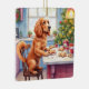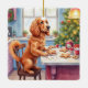 This playful Christmas artwork features a Cocker Spaniel baking gingerbread cookies in a festive holiday kitchen. Perfect for seasonal décor, dog-lover gifts, cookie-baking fans, and anyone who loves charming Christmas whimsy.