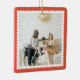 Each ornament features a distinctive scalloped square border that beautifully frames your cherished photograph. To maximize the memory-making, this ornament is double-sided, offering you space to feature two different precious pictures—one on the front and one on the back. A heartfelt "Merry Christmas" greeting, presented in an elegant, handwritten script, is subtly overlaid on the photo on each side, lending a warm, personalized touch.