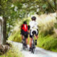 Two road racing cyclique enjoying the country lanes of Wales. Watercolor.