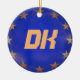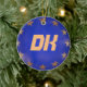 Cet ornement de Noël au Danemark est une excellente façon de se souvenir d’un voyage en Europe ou de son héritage. L'ornement est en porcelaine blanche. Un côté a un grand DK sur l'U.E.fanion. Au contraire, le mot Danemark sur le drapeau danois et l'Union européenne.fanion. On customise facilement à l'ornement : tailles, styles, couleurs, images, texte, etc. Pour plus d'ornements comme celui-ci, visitez : www.zazzle.com/azorean, puis parcourez la collection d'ornements de Noël.