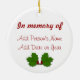 Les vacances rassemblent la famille, les amis, et les traditions. Juste parce que quelqu'un n'est pas avec vous ne signifie pas que vous devez célébrer sans elles. Maintenez les souvenirs vivants avec cet ornement de guirlande de houx, qui est conçu pour inclure une image de votre aimée sur l'avant, aussi bien que brin editable des textes et de houx sur le dos.