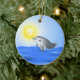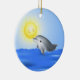 Bébé dauphin nageant dans l'eau bleue de l'océan et jouant avec le dessin animé du soleil illustration numérique.