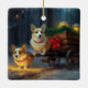 Ornement En Céramique Décor de Noël Corgi Snowy Sleigh