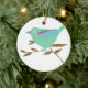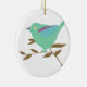 Deux petits oiseaux, un de chaque côté, dans les tons rose et menthe