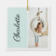 Une belle photo de conservation simple, minimale et moderne & ornement de nom personnalisé pour ajouter une touche personnalisée à votre arbre de vacances en famille. L'ornement comprend une disposition verticale portrait photo avec un simple arrière - plan vert menthe et personnalisée avec le nom sur l'avant et l'arrière pour vous permettre d'afficher deux photos.