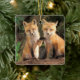 Ornement En Céramique Deux Pups Red Fox devant leur Den