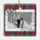 Add a cozy and classic touch to your tree with this square Christmas ornament featuring a warm holiday design centered on both sides. The ornament showcases a white rectangle overlay set against a rustic red and green tartan plaid background, giving it a timeless, festive look.
