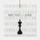 Cette conception d'échecs est décorée dans des tons noir, gris et blanc avec une pièce d'échecs King classique en noir. Personnalisez le dos avec un nom et une année.