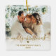 Elegant Gold Hand Lettered Script "Merry Christmas" Family Photo Ornament. Features a family photo template, "Merry Christmas" calligraphy text in handwritten script in faux gold and family name and year. Easy to personalize it. Photo tip: crop your photo to square form before upload it.
