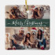 Ornement En Céramique Élégant Script 3 Photo Collage Vert Noël