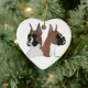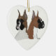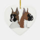Cet ornement en céramique en forme de coeur simple de vacances est honoré avec l'illustration numérique originale par Devildove. Deux boxeurs d'exposition vivante, expositions de tiret (brindle) et de Scotty (faon) votre amour pour la race de boxeur !