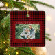 Créez votre propre ornement photo de Noël personnalisé avec l'une de vos photos de famille préférées, avec le nom de typographie minimaliste personnalisé et l'année sur un arrière - plan motif classique rouge en vichy plaid.
