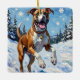 Ornement En Céramique Energetic Boxer Dog Leaping in Winter Snow Fun