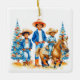 Ornement En Céramique Enfants Cowboy Noir Avec Cheval Noël