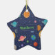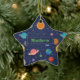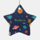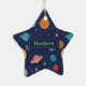Un système solaire moderne et amusant motif avec planète colorée, étoiles et illustrations solaires contre un arrière - plan bleu foncé. Cette conception peut être personnalisée avec un nom ou monogrammé avec des initiales. Ajoutez votre propre message de vacances à l'arrière. Un grand cadeau personnalisé pour les amateurs d'espace, d'astronomie et de science.