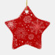 L'ornement d'étoile est présenté dans un tirage festif de flocons de neige rouges et blancs. Customisez cet objet ou achetez tel quel.