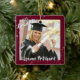 Créez un ornement commémoratif de fin d'études avec deux photos du diplômé (l'une sur le devant et l'autre sur le dos), leur nom et l'année de classe avec le titre de typographie du script de brosse GRADUATE contre une couleur arrière - plan de maroon modifiable avec étoiles. Contactez le concepteur via Zazzle Conversation ou makeitaboutyoustore@gmail.com si vous souhaitez modifier ce design ou sur un autre produit.