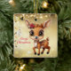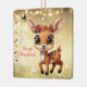 Célébrez la saison des fêtes avec cet ornement en céramique unique en forme de cerf carré festif doré, représentant un graphique de dessin animé d'un animal mignon de la forêt, un bébé cerf avec des fleurs de poinsettia coincées dans l'oreille du faon, et "Joyeux Noël" écrit en rouge. Parfait pour décorer votre arbre ou comme cadeau attentionné, ce décor fantaisiste de biche florale est un objet de collection précieux pendant des années. Personnalisez en changeant le texte, la police, la couleur de la police ou en supprimant le texte. Vous pouvez même transférer ce design sur d'autres produits. Profitez de ce design à votre façon ! Découvrez la collection de Noël ForestBabies Xmas Deer pour des décorations assorties.