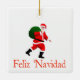 Crois-tu au Père Noël ? Une image du Père Noël avec un sac vert de cadeaux. Le texte espagnol "Feliz Navidad" apparaît en rouge.