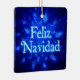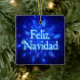 Un essaim de flocons de neige fractaux bleus. Le texte espagnol "Feliz Navidad" apparaît en bleu et blanc éclatant.